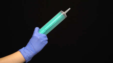 Doctors hands with a syringe for injection to the patient. The doctor makes an intravenous injection to the patient.