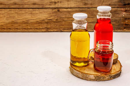 Colorful syrub in bottles for house interiors