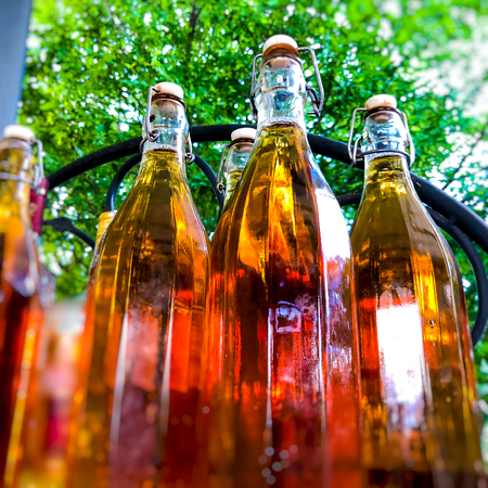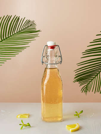 Homemade Fermented Raw Kombucha Drinks In Bottles.