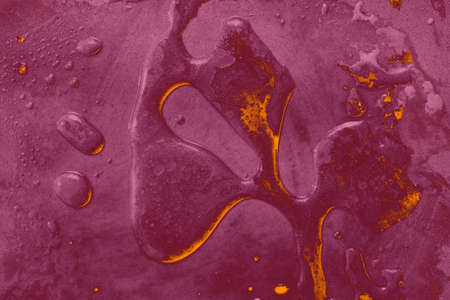 Drops of transparent cosmetic gel or serum yellow on a beige background. The concept of cosmetics or virus protection. top view.