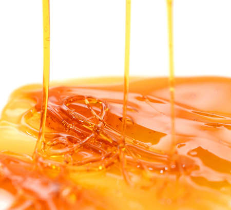 Honey dripping isolated on white background.Natural product and sweet drink.