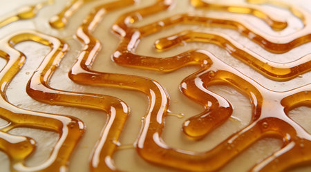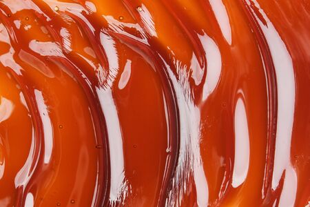 The texture of the wavy caramel closeup. View from above. Spreading caramel.