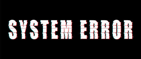 System error message on device screen with code and glitch effect background, technology and network security 2d illustration