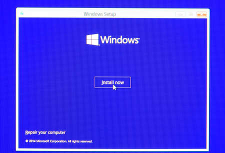 Russia, Poltavskaya village - August 13, 2016: Windows setting screen. Installing the operating system on your computer.