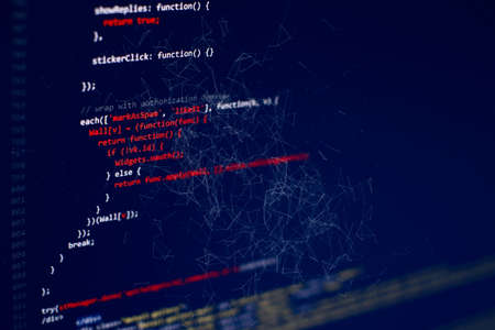 Programming code screen of software developer. Software Programming Work Time. Code text written and created