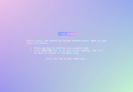 Blue screen with operating system error message and vaporwave aesthetics glitch style