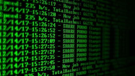 Mining Cryptocurrency process program on display PC. Using Software. Share Found.