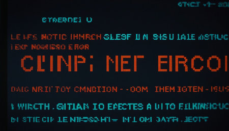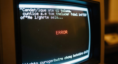 a close-up of a vintage display throws a red error in pixel letters with visible scanlines and glare, suggesting malfunction and troubleshooting. ai generated.