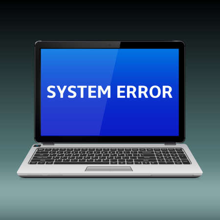 Business laptop with system critical error message on blue screen, Vector illustration.