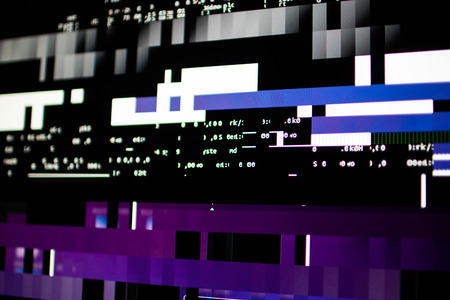Glitch effect creating digital distortion with chaotic noise in a dark setting