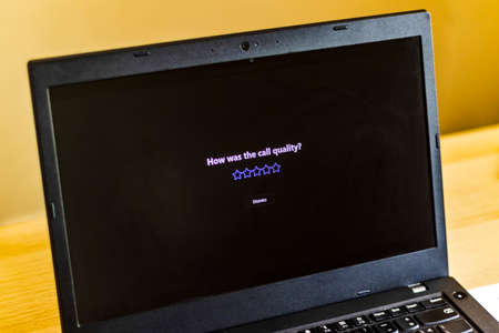 New York, USA - 9 April 2020: Shutterstock website on laptop screen close up. Man using service on display, blurry background, Illustrative Editorial.