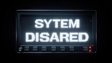 A high-resolution image of a digital display showing the error message SYSTEM DISARMED with bright white text against a dark background, symbolizing a technology alert.