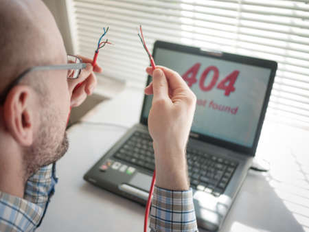 hands of chatting man with bank technical support, text Error on computer screen