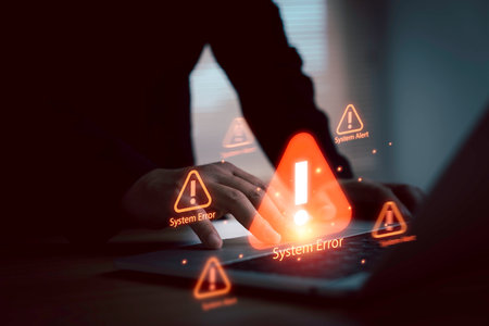 Computer screen showing glowing system error alerts for caution cybersecurity risk protection and system failure highlighting the importance of data safety digital security and technical monitoring