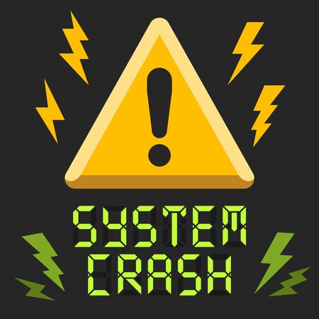 System error message on device screen with code and glitch effect background, technology and network security 2d illustration