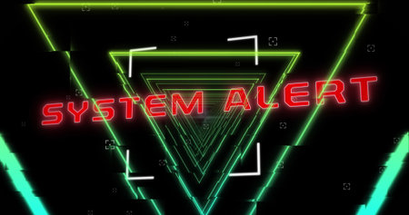 Image of system alert text over triangles on black background. Global social media and digital interface concept digitally generated image.