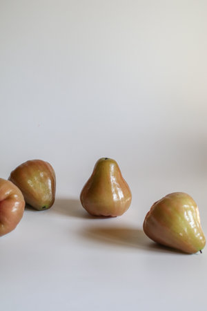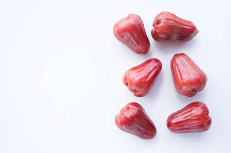 Rose apple or chomphu on white background under morning light from window.. Thailand apple fruit flavors of sweet red gloss.