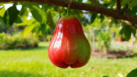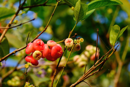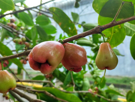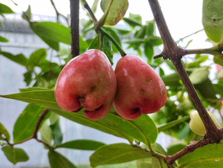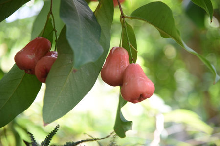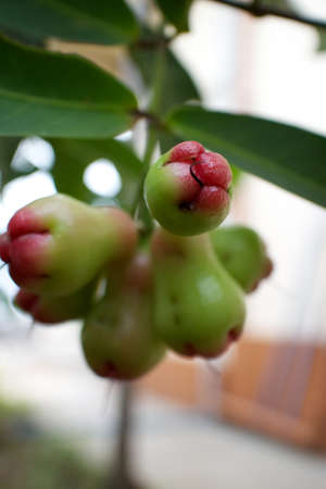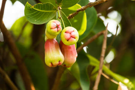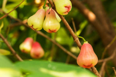 Rose Apple or Water Apples Fruits hanging on the tree with natural background