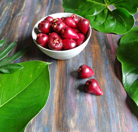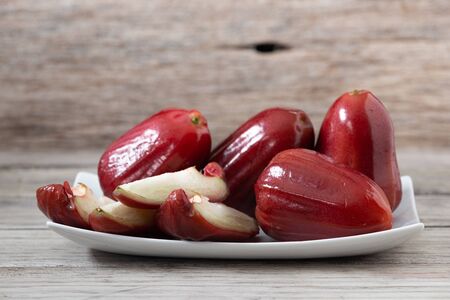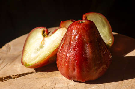 Thailand rose apple fruit flavors of sweet red gloss. Rose apple on wood background
