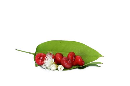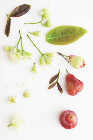 Freshly rose apple or Chomphu fruit on white background. The fruits are sweet and red or green.