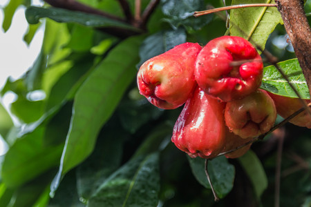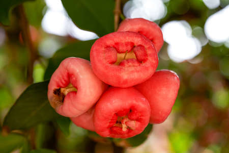 Ripe wax apple fruit group hang on the tree branch