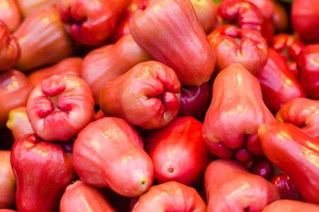 full of vitamin raw red rose apple in summer thai market