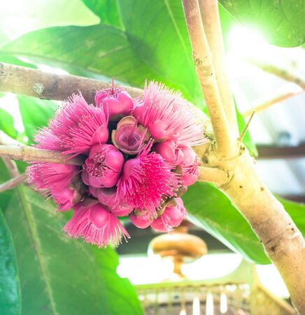 pink flower of Syzygium malaccense on tree in sun light