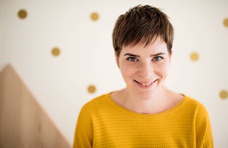 Portrait of mid adult businesswoman standing indoors. Copy space.