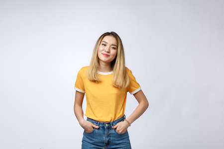 Beautiful asian girl with healthy skin isolated on white background. Lifestyle concept.