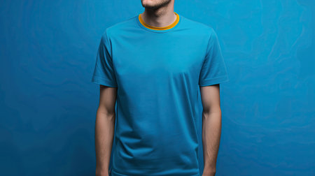 Tan T-Shirt on a Vibrant Teal and Yellow Background: Minimalist Fashion Concept