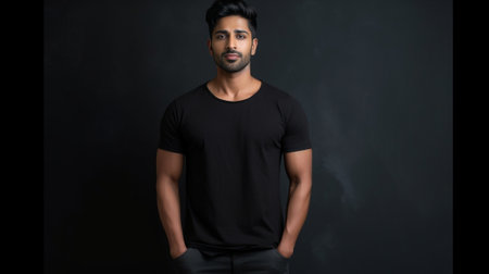Handsome Indian man looking at camera while standing against black and white background : Generative AI