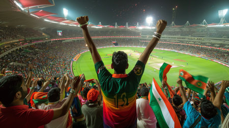 Fans immerse themselves in the dynamic atmosphere of the cricket stadium