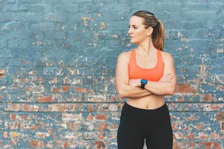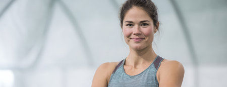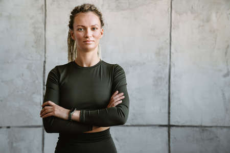Young sportswoman posing with arms crossed indoors