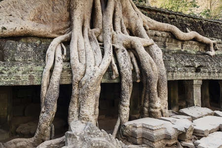 Roots at temple ruins at Angkor Wat, Siem Reap, Cambodia.