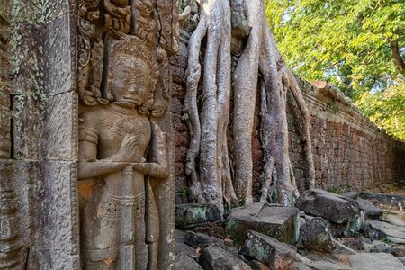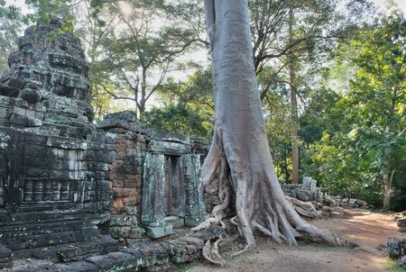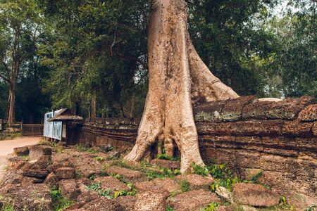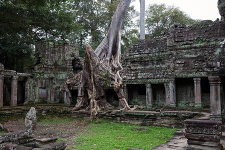 Preh Khan temple with silk cotton tree roots in Siem Reap, Cambodia