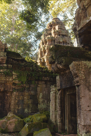 The ruins of Ta Prohm temple among the trees. Cambodia Siem reap