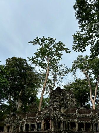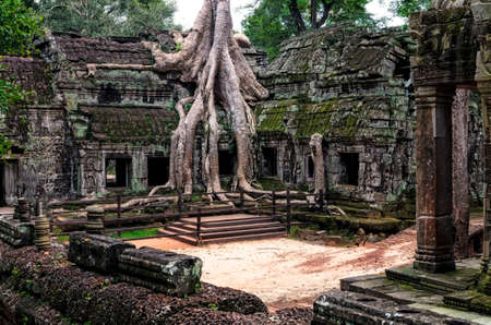 Ta Prohm, a mysterious temple of the Khmer civilization, located on the territory of Angkor in Cambodia.