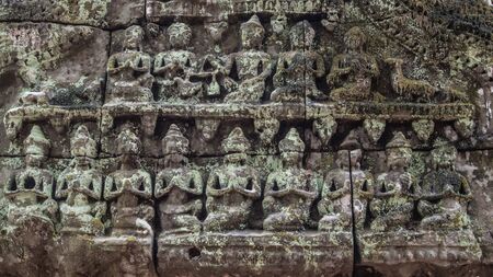detail of ancient stone bas-relief carvings on the wall background texture - complex Angkor wat Cambodia.