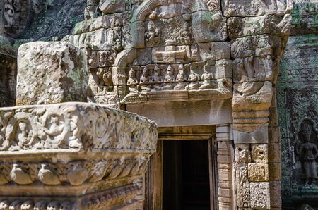 One of the temple in Ta Prohm, Angkor, Cambodia. Jungle temple with massive trees growing out of its walls. Tomb Raider shot here. 1186 CE