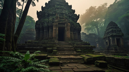Ruins of the ancient temple in the jungle.