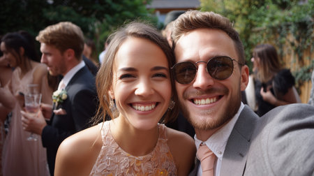 Friends enjoy a joyful celebration outdoors in a beautiful garden setting