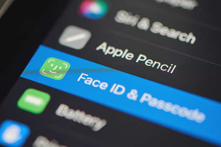 New york, USA - September 24 2021:Check face ID menu on ipad panel screen close up view