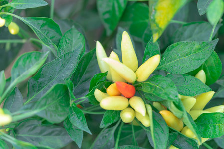 Capsicum Annuum or multi-color chili with blurred foreground and background