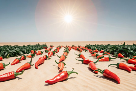 Elongated Red chili peppers. Hot fresh plant. Generate Ai