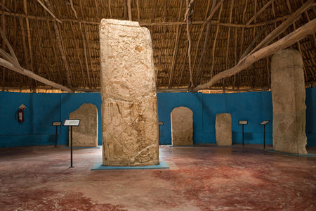 April 20, 2014 Campeche, Mexico: small museum with protected mayan carvings at the Edzna archaeological park