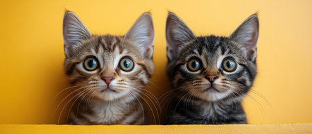 Cute tabby kittens looking at camera. Horizontal banner with AI-Generated Images