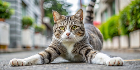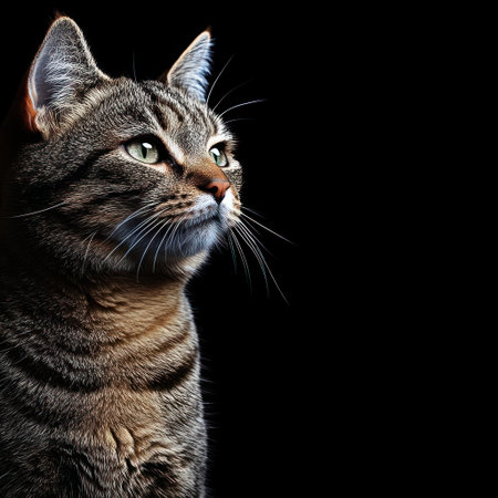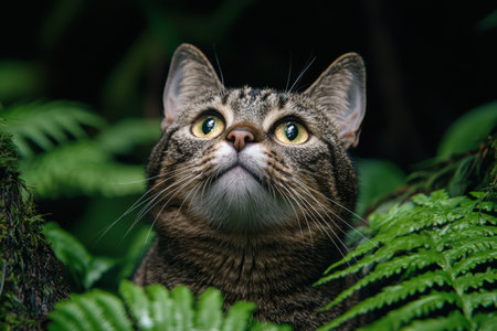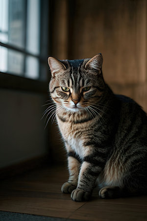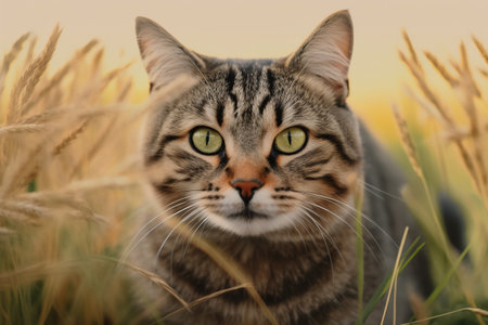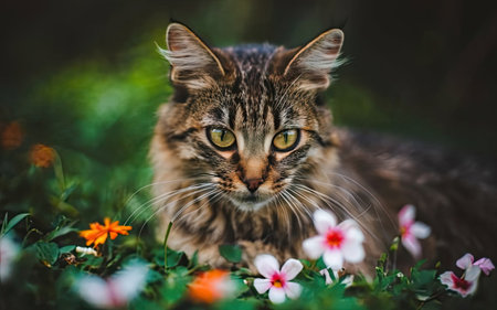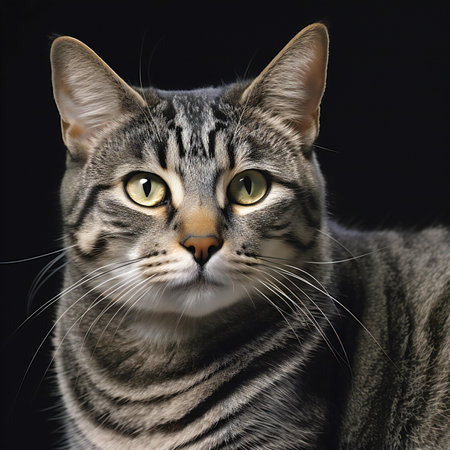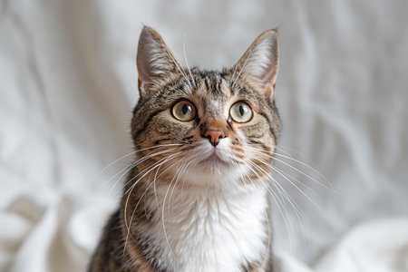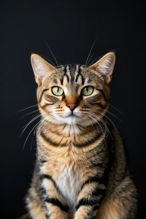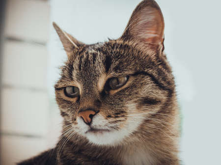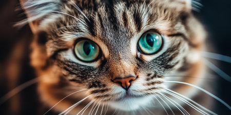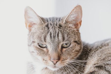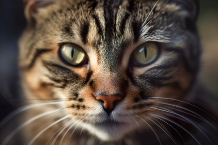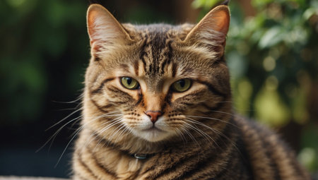 Digital image of tabby cat is looking into a camera, high quality, high resolution