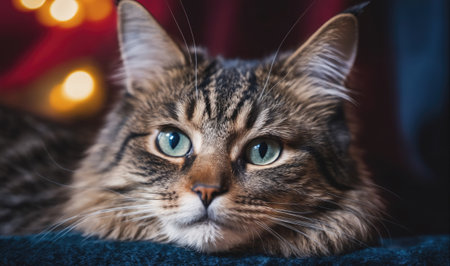 Curious Tabby Cat Portrait Captivating Gaze, Soft Lighting, and Dreamy Bokeh Background