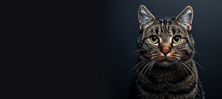 Gray cat portrait on dark background. Cute pet. Created with Generative AI