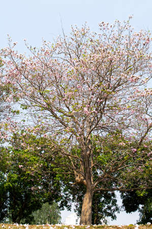 Pink trumpet tree Chompoo Pantip in winter, Thai.